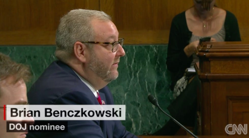 Brian Benczkowski looks like your standard-issue jowly GOP hack with questionable facial hair. But look closer, because this hack is special!