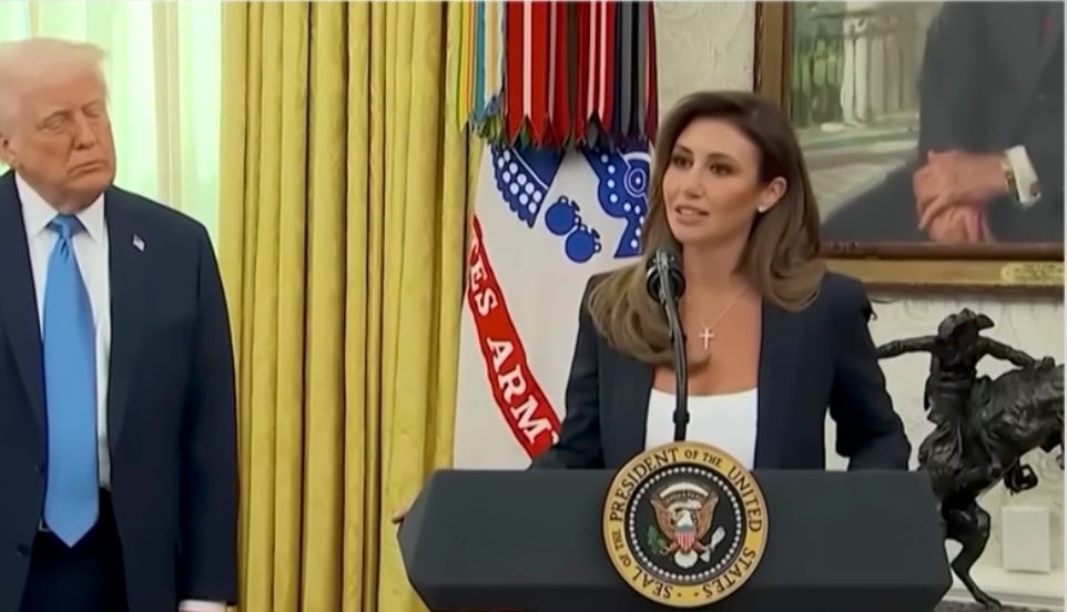 But she yells Trump’s praise like she’s got a sausage as big as a gorilla’s pishadeel, so don’t worry, Trump will no doubt find some other made-up position for her soon. She could work on the Weaponization Working Group with Ed Martin, going on quests like filming themselves peeping in Leticia James’s windows. Look at me acting like freaky pervert! TISH JAMES, YA OWNED! And there’s always the podcast route, like accused teenybopperfucker Matt Gaetz took. Or you could see her slinging grifty hard-on supplements made out of old Chinese newspapers for sure!