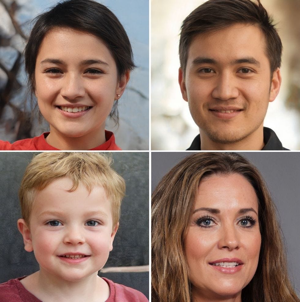 About a year ago, an AI process was unveiled that could create frighteningly realistic faces for people that literally don't exist. It's an amazing advance in machine learning, and yes, fake faces are now regularly showing up in fake online profiles, too. Here are a few unreal people grabbed this morning from ThisPersonDoesNotExist.com :