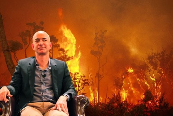 The real scandal, of course, isn't that Jeff Bezos, with his paltry cube-shaped wombat turd of a donation, hasn't committed a big enough donation to help with the problem his company contributes to. It's that we let billionaires exploit the tax code to amass those billions in the first place and pretend their generosity somehow makes up for all they've extracted. If Amazon and other megacorporations paid anything like their fair share in taxes, and if the world's biggest polluters hadn't spent decades blocking action on climate, we wouldn't be complaining about Amazon's puny donation in the first place.