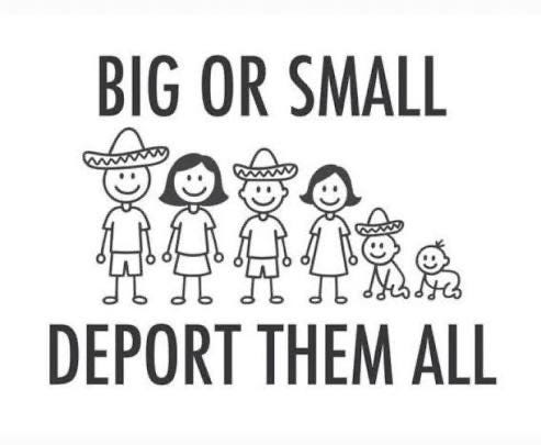 I considered using that awful "deport them all" drawing as the main image, but worried that some asshat might love it and start using it. So I went with the faces of the kids and moms