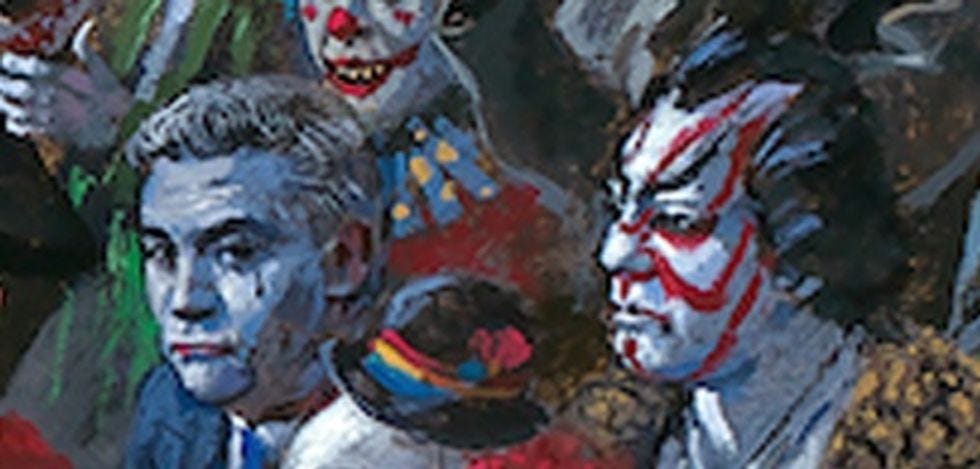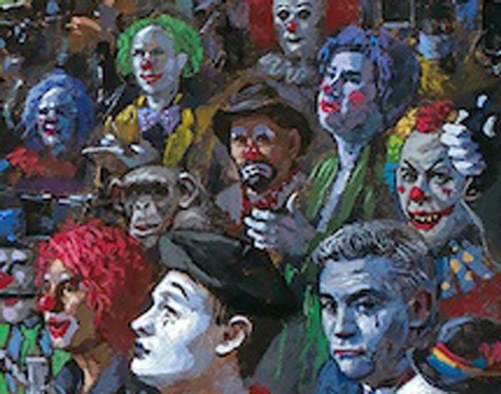 We'll confess that art can be open to interpretation, which is what makes it art, but we're fairly sure we see what The Master is getting at here. It might best be summarized as, Looks like those clowns in the media did it again! What a bunch of clowns!