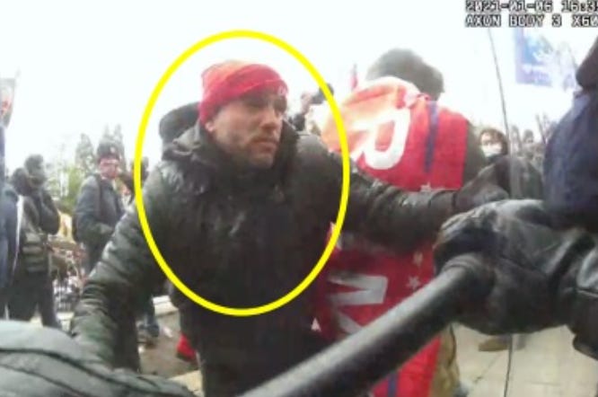There is also video somewhere of Bosch crying out “Hold the line!” as he and his fellow insurrectionists pushed into the cops, because baby loves drama and probably also Civil War reenactment LARPing.