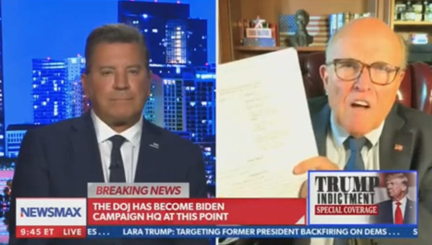 Dear readers, please stop what you are doing to watch Rudy blubbering and crying on national TV, or at least on Newsmax. Watch him sob about what a mean man Jack Smith is for indicting Trump. Celebrate his misery.