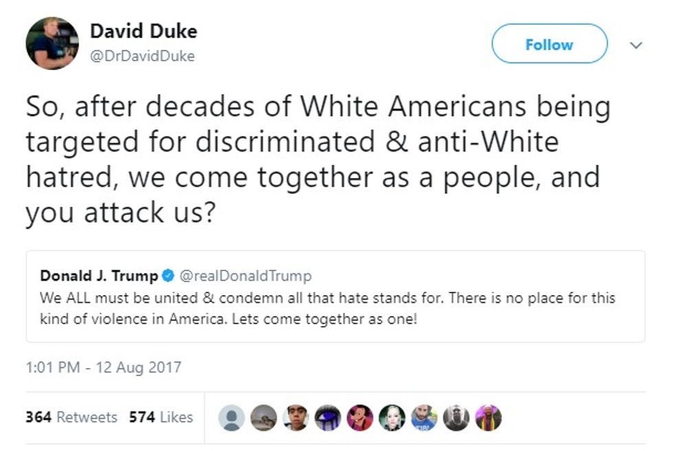 Well, maybe David Duke was a trifle miffed that Donald Trump didn't stand up enough for white people: