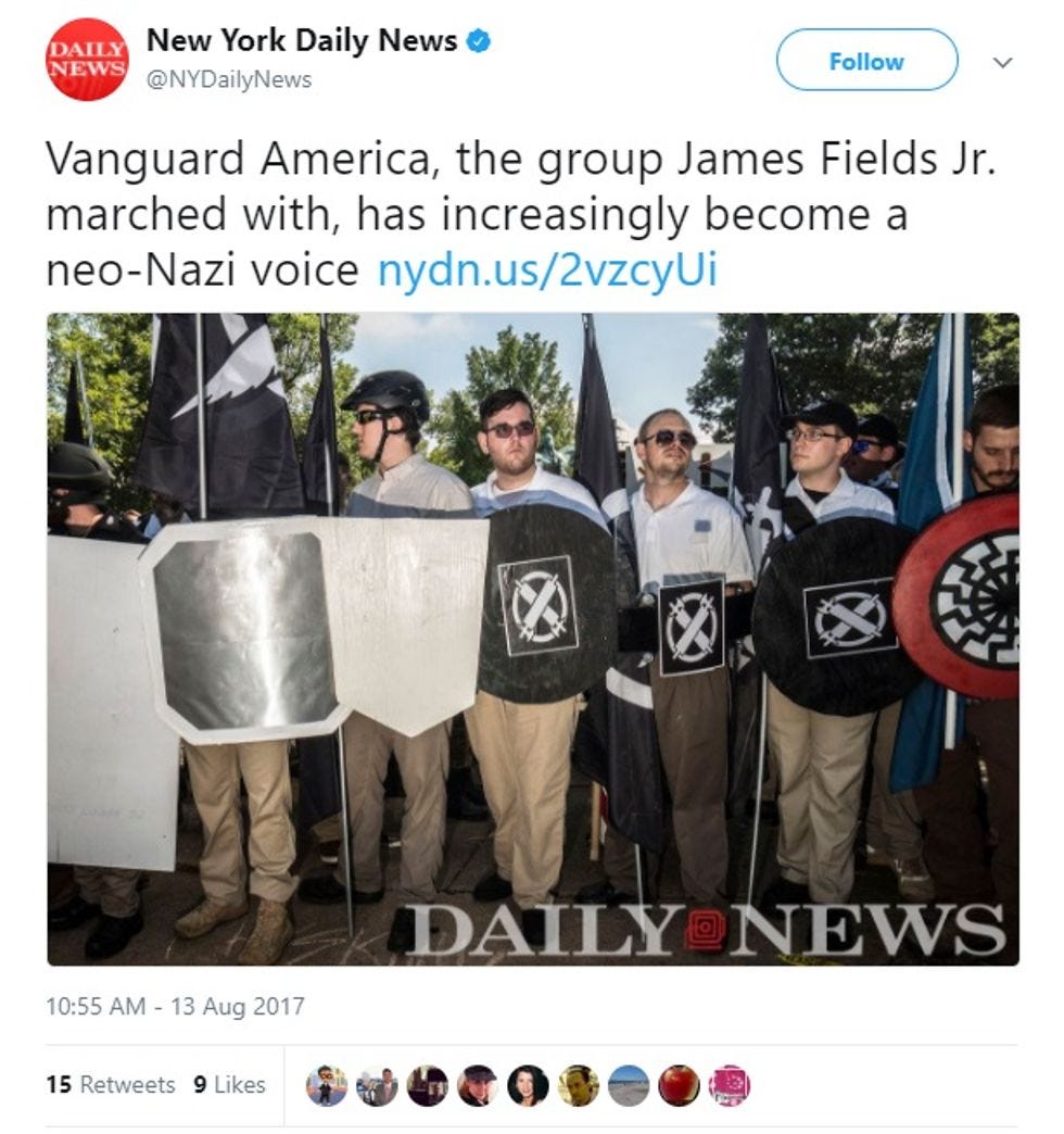 No doubt the Nazis will start claiming that photos of James Fields carrying a shield with the logo of white supremacist group Vanguard America were photoshopped.