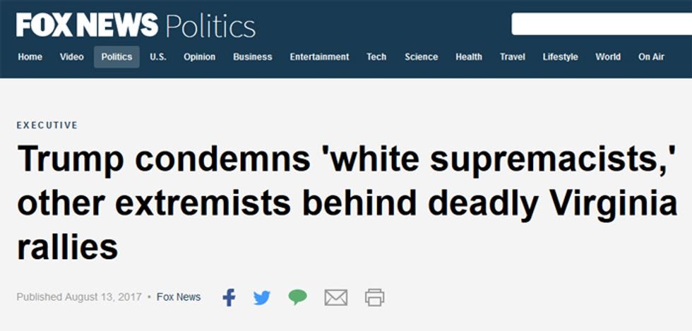Update: Hey,Fox News is pretending Trump actually condemned white supremacists, based on that "clarification":
