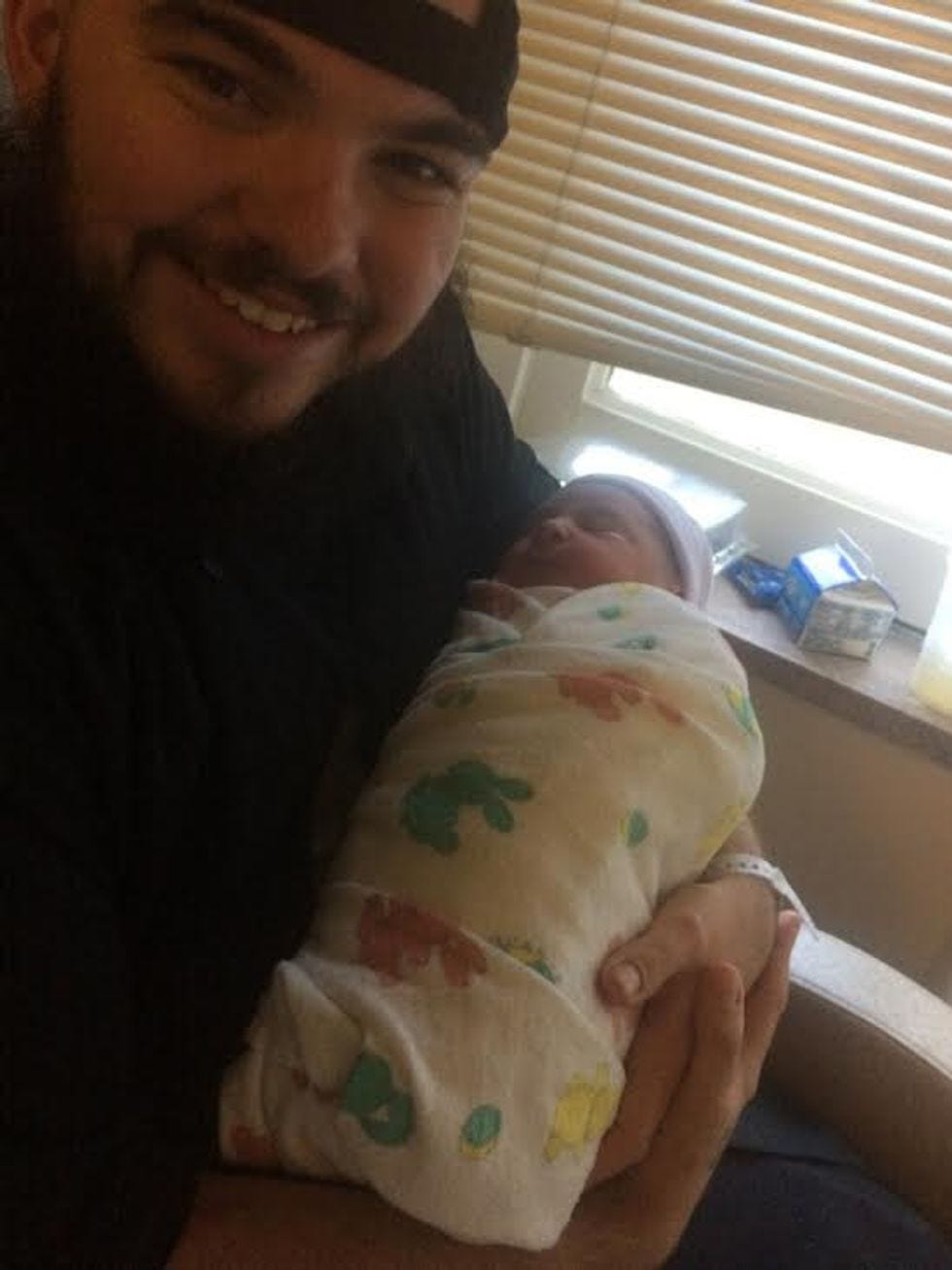 Introducing Tallulah Schoenkopf, heiress to James and Tawnie Schoenkopf, born June 25 and weighing six pounds and some change, and who didn't give her mother hardly any trouble at all. Mother is feeling good and had a delicious shower, and father, who has wanted to be a daddy since he was two years old, is kind of happy okay, I guess, as you can see in the picture. Grandmother has hurty cheeks from smiling too much like she is on acid, and grandfather keeps making fun of her and calling her Granny.