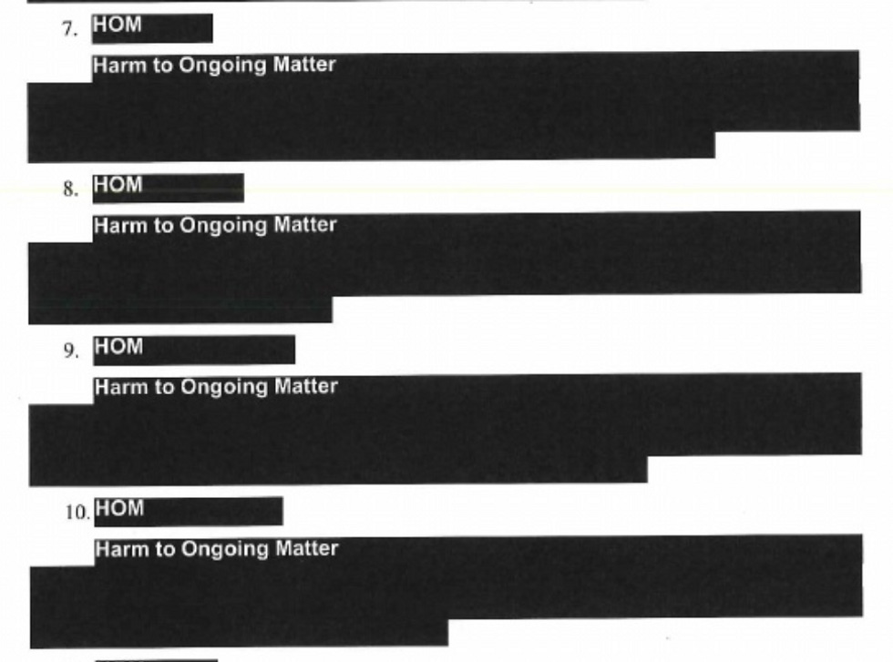 5: 19:More interesting is the stuff he transferred completely, because it was judged to be outside the scope of his investigation. These are the shoes left to drop, and they are REDACTED.