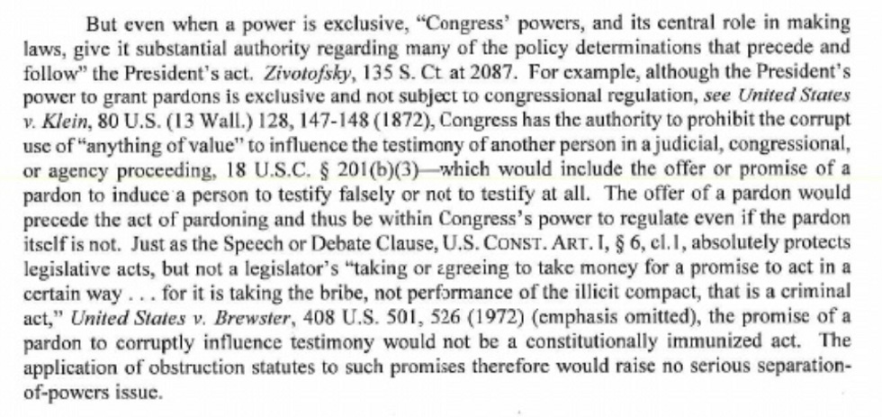 3: 59:Ahhhhh, page 173, here you go, it is your Very Good Explanation of how Trump can both have A) absolute power to pardon and B) obstruct justice by dangling pardons for corrupt purposes. Read and learn: