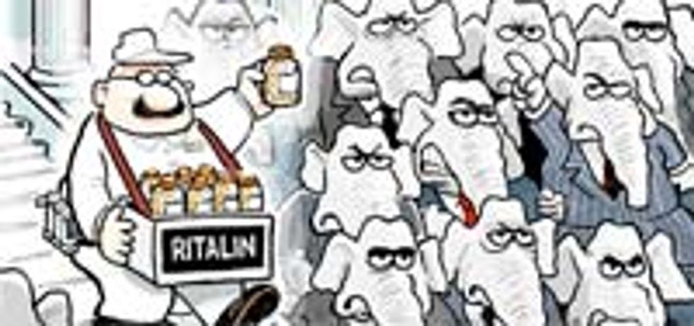 Ha ha, just kidding, all of Obama's limbs are still firmly attached to his torso ... FOR THE MOMENT. Nevertheless, since he is keenly interested in maintaining his body's structural integrity, he needs to find a way to sedate the Bitters. Since he's just stone cold reformin' health care all the time these days, naturally his thoughts turned to pills, and he came up with the idea of attempting to lull his political opponents into a dull sense of acquiescence with the same magical pharmaceuticals that America's parents use to get their kids to stop shrieking while the TV is on. But, silly Obama! You can't defeat Republicans with drugs! That's Democrat territory. Next time, try little boys.