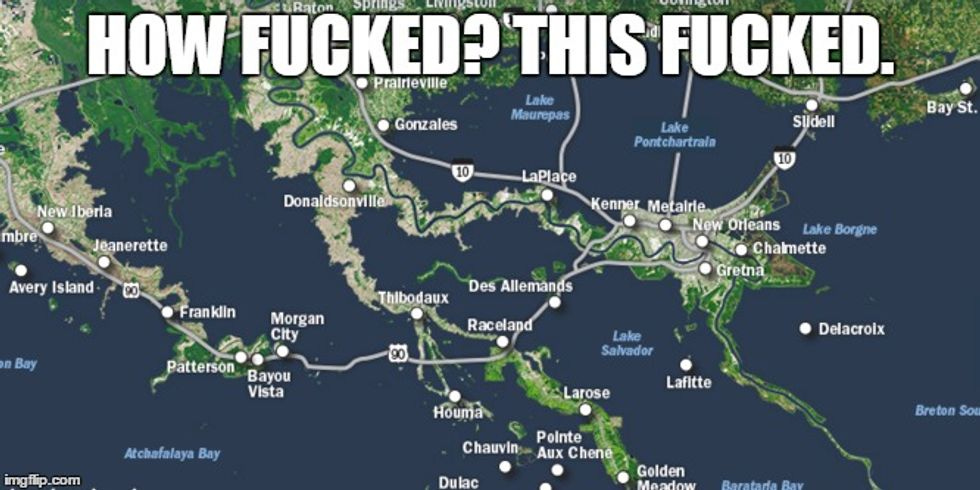 You guys don't like #ScienceFacts. You like pictures. Lucky for you, the New Orleans Advocate has created a whole interactive-type graphic thingy where you can see what will happen to southern Louisianne, depending on if Antarctica stays frozen, melts a little bit, or turns into a tropical vacation destination. For instance, here's what it looks like if sea levels rise six feet: