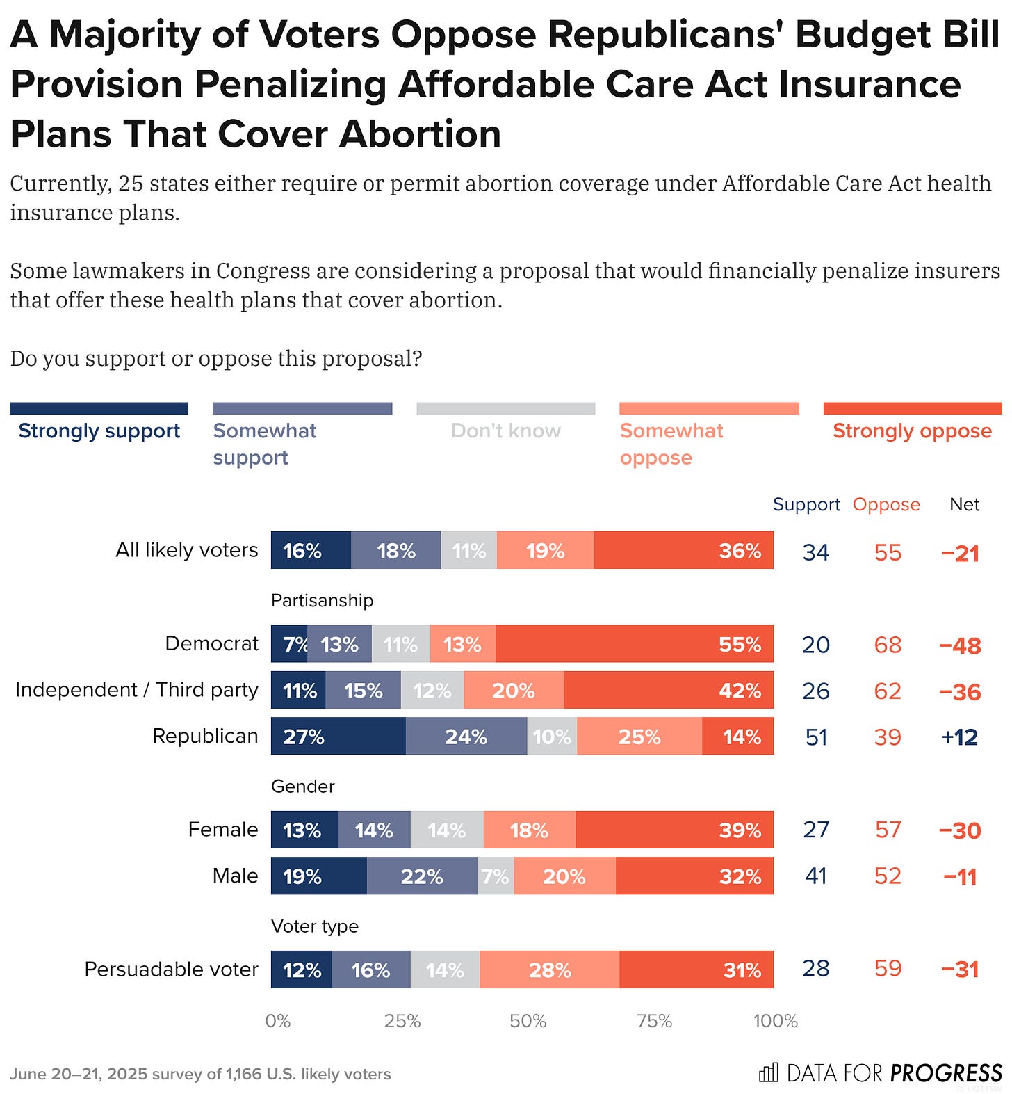 A majority of voters is also opposed to the provision that would penalize ACA plans for covering abortion.