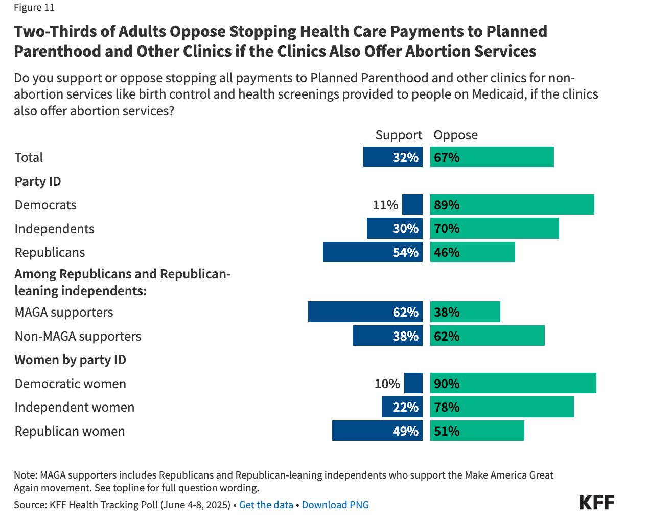 The KFF poll also found that if respondents were asked, “What if you heard that even though no federal payment to Planned Parenthood goes directly to abortion services, cutting off all Medicaid payments to Planned Parenthood and other clinics would make it difficult for many lower-income women to access health services, such as treatment for STDs, cancer screenings, and birth control?” opposition to defunding went up to 80 percent.