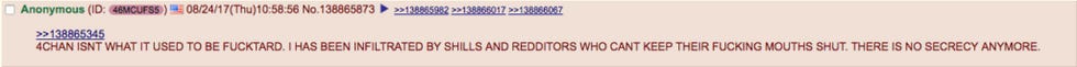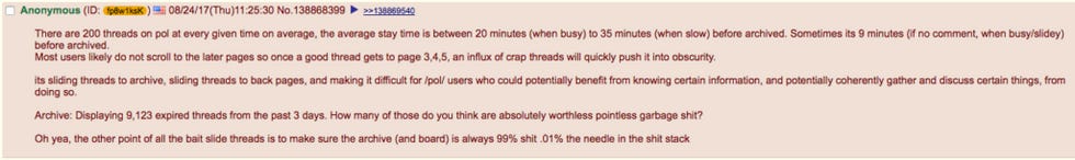 Over on another thread , several /pol/ denizens were also whining about how they have been infiltrated by outsiders and "normies" posting threads and "making it difficult for /pol/ users who could potentially benefit from knowing certain information, and potentially coherently gather and discuss certain things, from doing so."