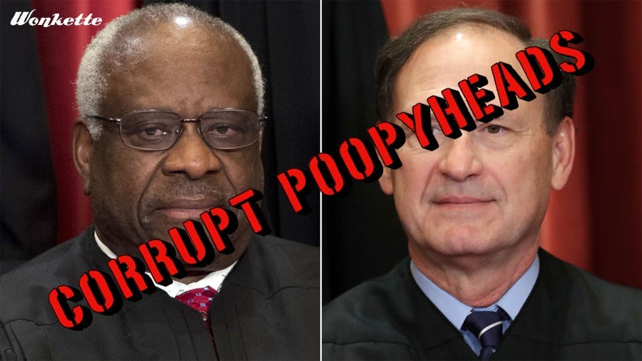 Ocasio-Cortez’s impeachment filing follows up on a request from Sens. Sheldon Whitehouse (D-Rhode Island) and Ron Wyden (D-Oregon) for the Justice Department to appoint a special counsel to investigate Thomas’s acceptance of millions of dollars worth of gifts from big Republican donors who have business before the Court, another move that could be dismissed as “political theater” but goddamn well shouldn’t be laughed off in any democracy that claims to hold its leaders responsible under the law.