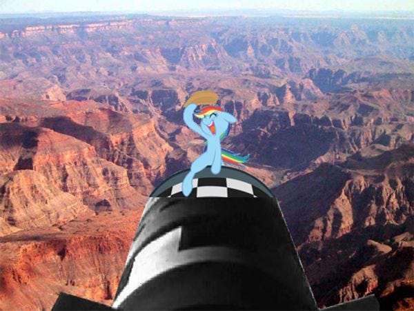 Yes, that's a very realistic possibility, especially when you consider Barack Obama's nefarious plan to nuke America. It's just about our favorite conspiracy theory, so much juicier than a mere forged birth certificate. The broad outlines, cobbled together by internet weirdos, involve one or more missing nuclear warheads that will supposedly be detonated high in the atmosphere to knock out the electrical grid and create the pretext for Obama to declare martial law, so that in the resulting chaos, Russian troops that are already in America for "training exercises" can take over, possibly aided by Canadian and UN forces. Oh, and the whole thing may be orchestrated by George Soros, who will somehow make a killing in the financial markets by betting against America.