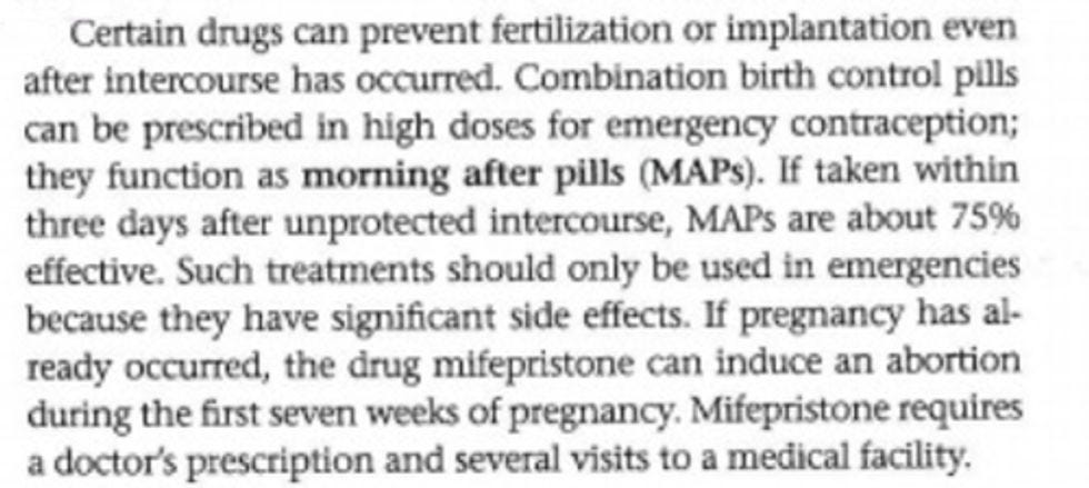 The board originally voted to chop the offending page out of the textbook because it believed that the mention of mifepristone -- aka RU486 -- violated a stupid 2012 Arizona law requiring that all instructional materials promote “childbirth or adoption” instead of abortion. Here's the dirty salacious pro-'bortion passage in question: