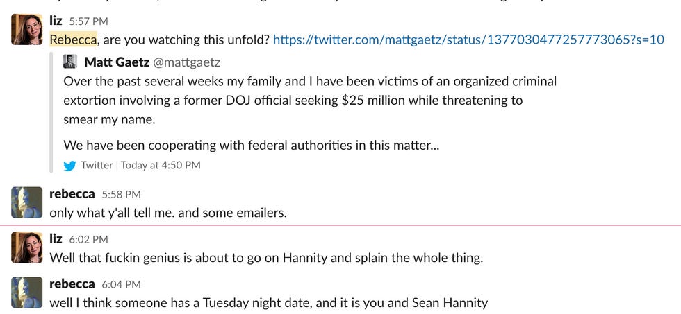 There's about to be a RUSH of stories on Matt Gaetz, who says he is being THE BLACKMAILED!!!! (Axios) But the New York Times says it is about a girl, and an investigation begun under Billy Barr. And Gaetz is all over Twitter and is just making me tired. Liz will be along to splain it eventually because I just assigned her to a date with SEAN HANNITY whoo hooooooo! (Is she happy about it? LOL.)