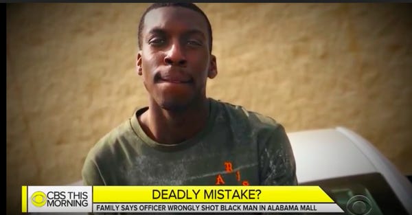 On Thanksgiving night (that's last Thursday if you don't know how the holiday works), there was a shooting at Riverchase Galleria, a very fancy name for a very large mall in the Birmingham suburb of Hoover. During the commotion and gunfire, an officer working security fatally shot 21-year-old Emantic "EJ" Bradford Jr., and the police immediately set out to protect the cop and serve Bradford with posthumous slander.