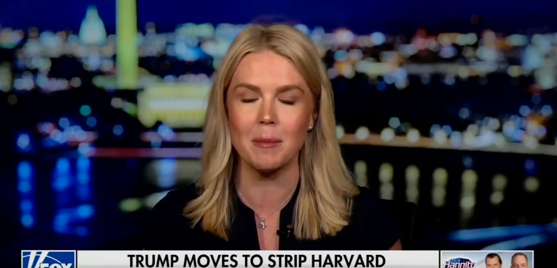 White House Nazi Barbie Karoline Leavitt loyally marched over to Fox News last night to spread the regime’s propaganda, wearing of course that “What’s that smell” look that’s apparently permanently affixed to her Mar-a-Lago face.