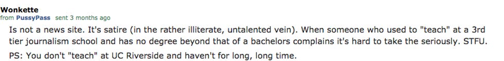 Remember a couple years back, when we got BANNED by REDDIT (/r/politics) for the crime of inserting a speculum into their vagina? Those were fun good times! I was all hey we are not crime? And they said no, you are satire, just like those idiots who make up excellent stories about famous people who did not die, but they said they died. We are definitely the same as that, and definitely also worse than, say, World Net Daily, home of patriotic Americans who say Barack Obama is a Martian pregnant with alien eggs, and also Ted Nugent, who are not banned, but we are banned.