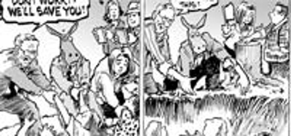 As your Comics Curmudgeon demonstrated earlier this year, political cartoonists love butts. Just love ’em! The ass is the most polysemous of images, representing everything from sex appeal to debasement and humiliation to an actual butt. So we're presenting a panoply of ass shots this week, with a greater emphasis on sodomy. But those of you who aren't butt fans (even though such a person is scarcely imaginable), fear not! There will also be severed limbs.