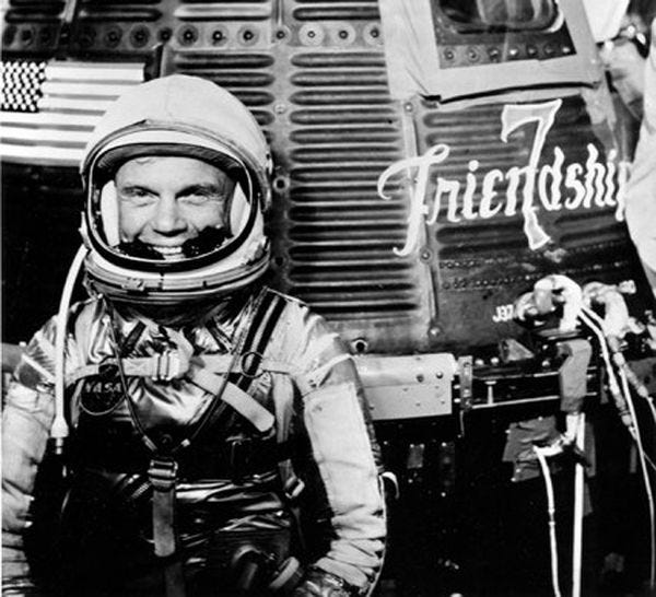 Yr Dok Zoom was a fetus at the time of Glenn's historic flight, so we don't remember it. We can at least say we were moving around in a cramped capsule at the same time.
