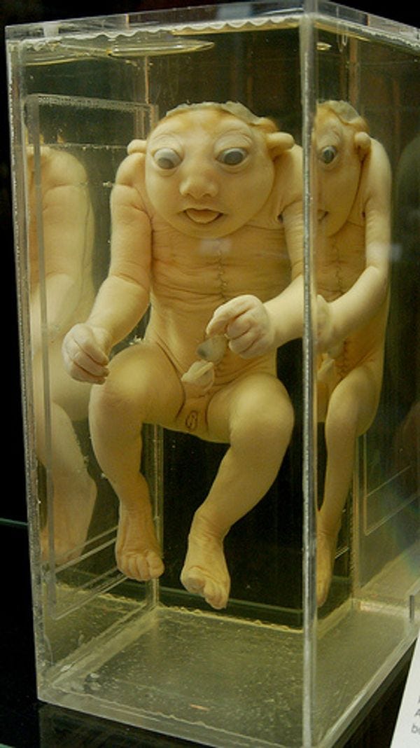 The Lincoln artifacts, singular they may be, are not even close to being the weirdest things at the Museum. The NMHM was founded during the Civil War, with the edict to gather "specimens of morbid anatomy ... together with projectiles and foreign bodies removed" from dead or wounded soldiers. Fun! It's collection expanded after the War to include, amongst 20 million other oddities, a giant hairball from a girl who ate her own hair, a leg amputated from a man with elephantiasis, and fetal specimens suspended in liquid.