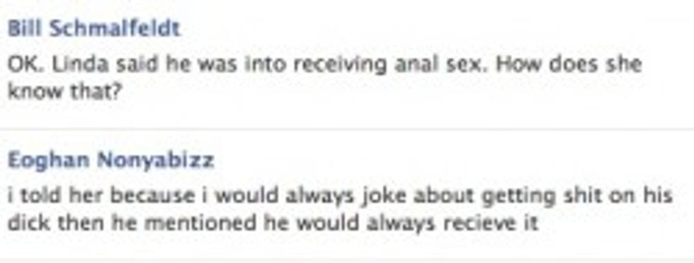 According to the two bloggers, Henderson used a Facebook account to communicate with the two men. Conversations obtained and published by the two websites indicate that Henderson may have provided the younger men, who appear to be possibly younger than 21, with alcohol and marijuana. The Facebook account cited by the bloggers has since been deleted.