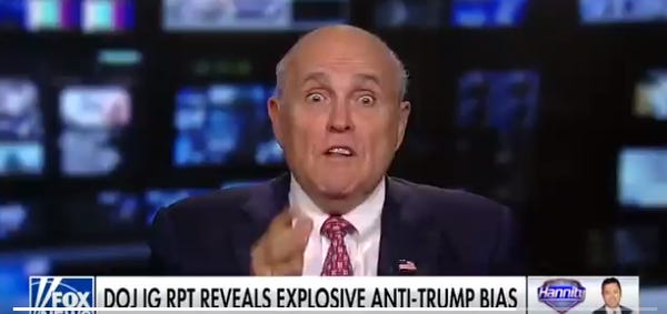 And we know Trump and Giuliani are probably mighty disappointed that the Department of Justice's inspector general report on the Hillary Clinton email investigation proves ALL OUR POINTS and proves exactly zero of the conspiracy theories that currently populate the rancid syphilitic puddles of mouse jizz the president and his lawyer call their "brains."