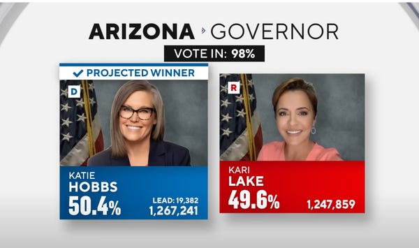 Democrat Katie Hobbs is Arizona’s next governor. She’s even updated her Twitter bio. That’s how official this is. She’s ready to move on.