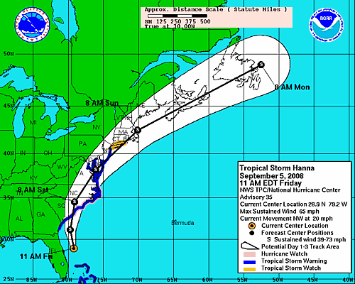 Good Morning, America! Did you love your two weeks of political conventions and soaring (or lame) rhetoric? No? Well, Allah has a treat for you! A million more hurricanes are headed to America, to kill everyone. Hanna will destroy wealthy white coastal regions of Georgia and North Carolina and Florida. [ AP , CNN ]
