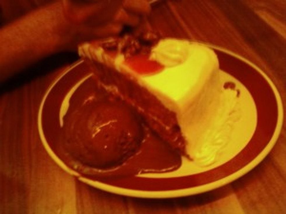The dessert doesn’t have bacon in it either, but we can live with that only because it's damn good. Carrot cake with fresh chocolate ice cream. Yum. Red velvet cake so good you arteries will clog while you're eating it. It does not get better than this.