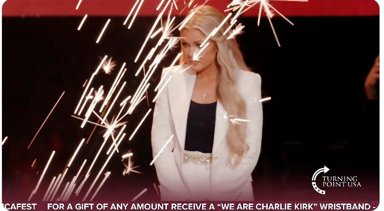 And there was Erika Kirk, newly named CEO of Turning Point, walking out to pyrotechnics.