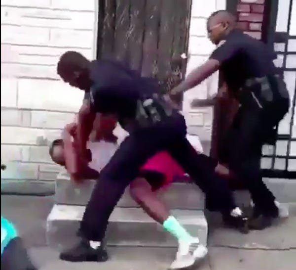 Baltimore might give a collective shrug to its police officers helping a suspect sever his own spine, but at least it is drawing a firm-ish line in the sand over cops beating suspects like Bluto working over a pre-spinach-enhanced Popeye: