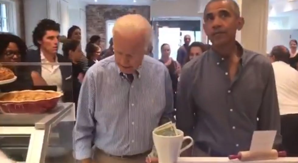Fresh off the very big controversy that happened when Jake Tapper noticed that Barack and Michelle Obama went to see a Beyoncé and Jay-Z concert, like common people who like music and who are friends with Beyoncé and Jay-Z, we have yet another example of Barack Obama WASTING ALL HIS TIME and completely failing to devote all of his waking hours to DESTROYING DONALD DRUMPF, and it is that he ate lunch with Joe Biden. In public . WHILE ROME BURNS.