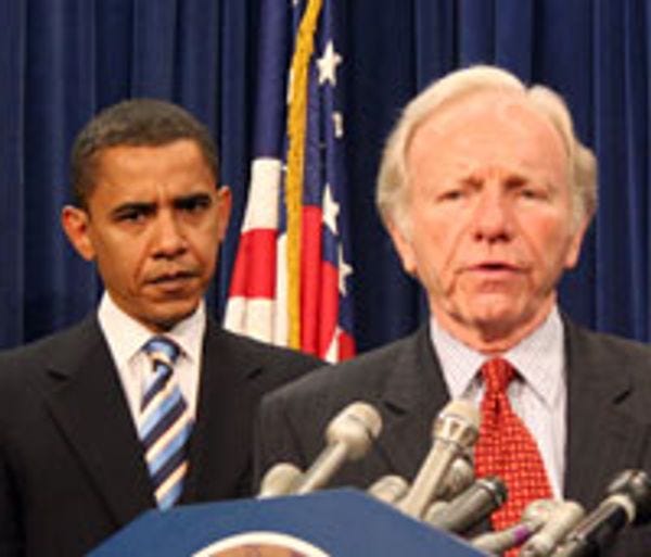 OH THAT BARACK, he has decided to play the Bigger Man: "President-elect Barack Obama has informed party officials that he wants Joe Lieberman to continue caucusing with the Democrats in the 111th Congress, Senate aides tell the Huffington Post." And because Joe Lieberman cannot help the situation in any way by, say, resigning his committee chairmanship honorably, this means probably very little will change. Fine. Let the baby make his fuss and have what he wants and he'll come off all the worse in public perception. On the other hand, Hill staffers are urged to take turns leaving flaming bags of poo on Lieberman's front stoop, nightly. Although Joe will probably enjoy eating them... GRRRR can't win with this guy. [ HuffPo ]