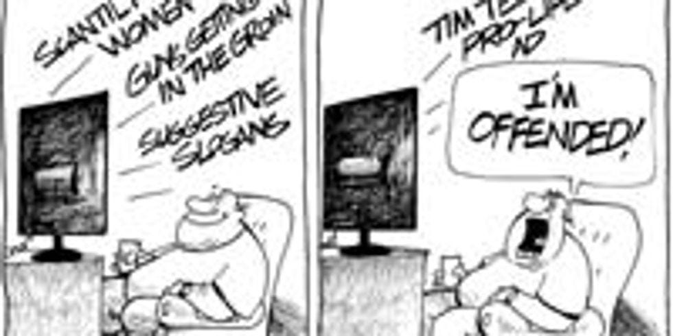 And yet despite this, controversy about abortion simply would not go away, and indeed threatened to invade the most sacred American institution: the insanely expensive advertising that runs during the Superbowl! Don't these people know that this is a "safe space" for beer ads or sock puppets, or ads about how we must count every Dorito, for America ? Since all ads on either side of this topic desperately avoid the term "abortions," most Americans would be too drunk or stupid to even notice it was happening, of course. But there is one group who will suffer, and that's those whose TVs are equipped with Closed Captioning For The Monumentally Stupid. Such televisions don't just show the action; they bellow out descriptions of what's happening in phrases easy enough for a kindergartner to understand, leaving no room for willful ignorance about CONTROVERSY on the part of viewers!