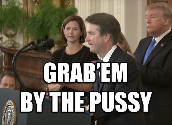 Outgoing Republican Senators Bob Corker and Jeff Flake have said they want to hear what Ford has to say, noting their opposition to ramming Kavanaugh through the nominating process. Meanwhile, Trump and Republicans are still holding up the 65 pussies Kavanaugh says he didn't grab in high school.