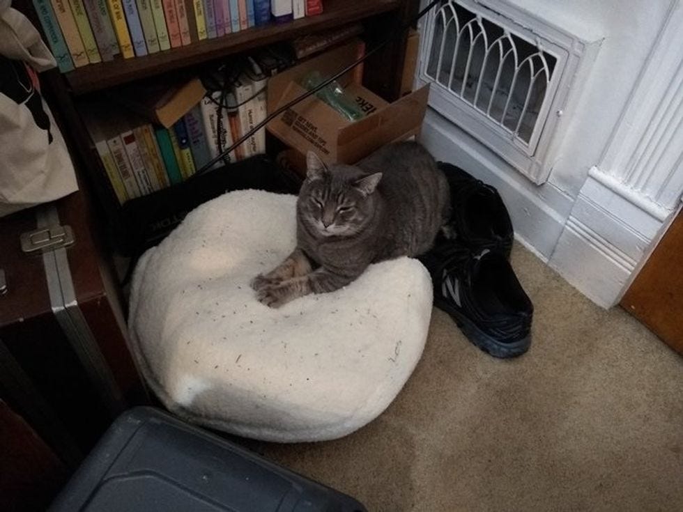 So I thought I'd do the cat a solid and get him a nice kitty bed to lie on and wouldn't that be fun? At least I got a pretty good tweet out of the result: