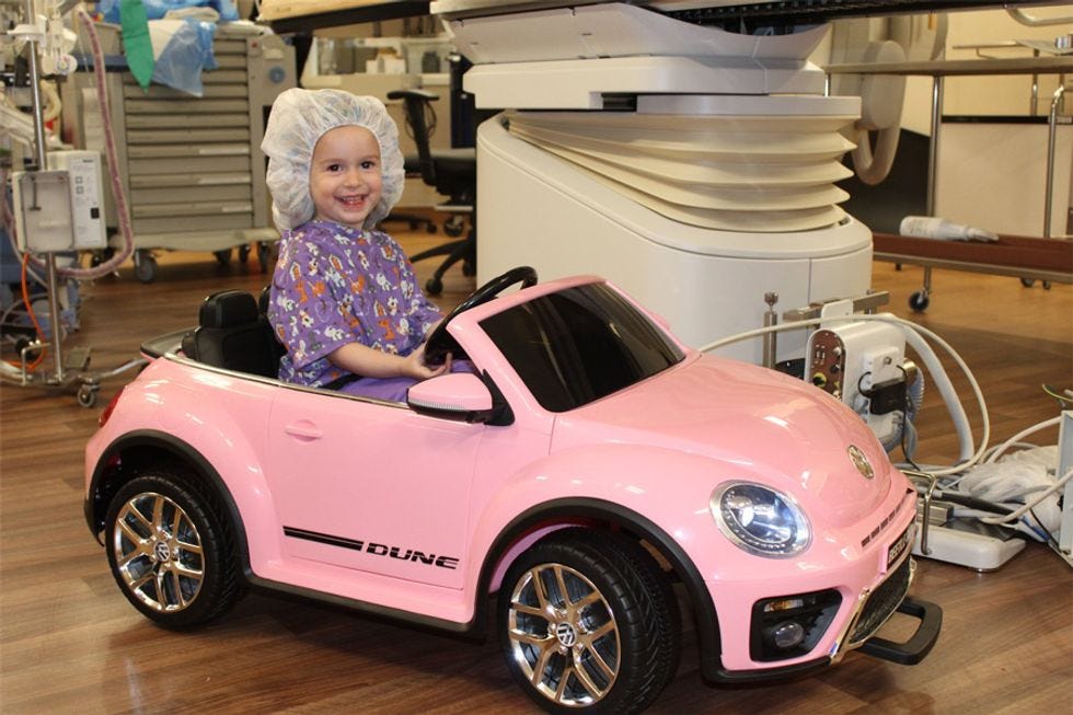 Last year, we introduced our little black Mercedes. Now we have a pink Volkswagen Beetle! These sweet rides take our smallest patients to the operating room. The goal is to reduce anxiety and stress, and make the experience less scary for everyone involved. Doesn't hurt to have options, right?
