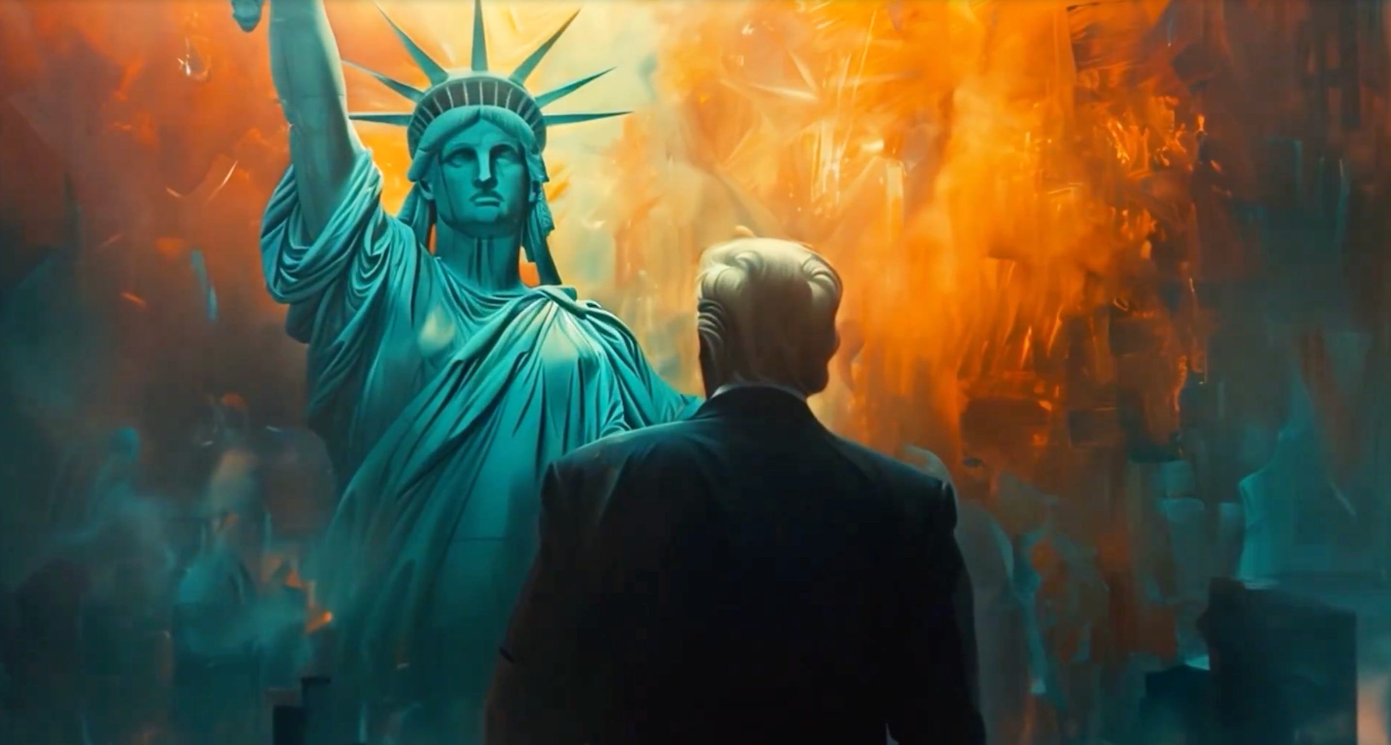 According to the description, “America Lives” is “a patriotic AI-animated video that captures the essence of Donald Trump's vision.”