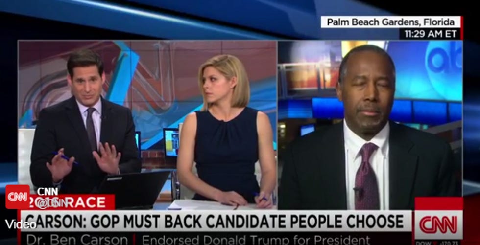 OMG WE MISS BEN CARSON SO MUCH. Whereas he used to give us a Nugget Of Idiot like every two hours when he was running for president, now that he's just a lowly Donald Trump surrogate, we have to wait for him to throw crumbs at us. Oh here's a crumb!