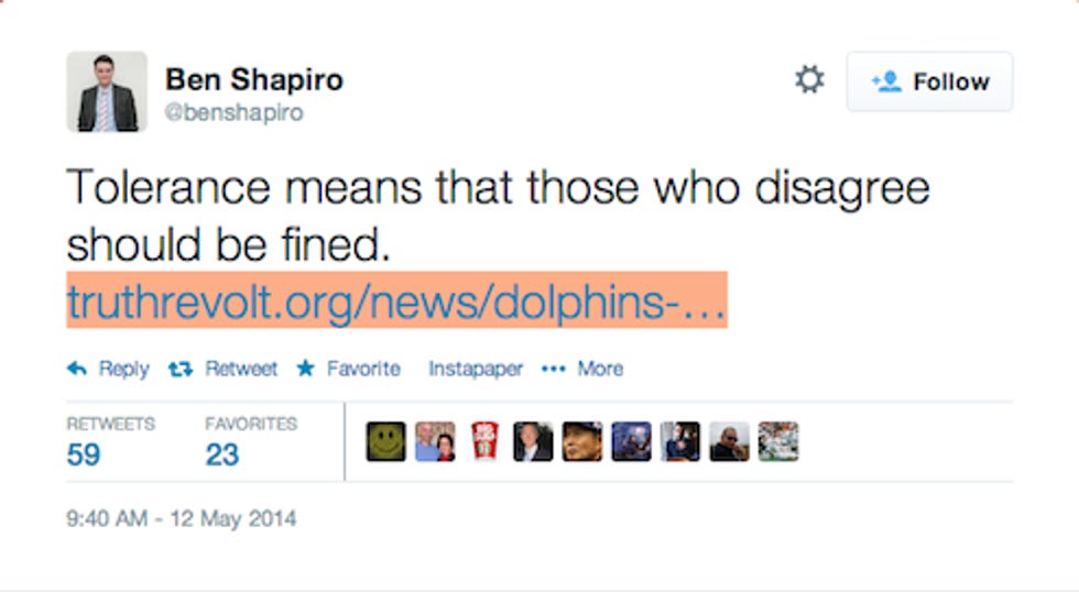 We think this is all related to Ben's deep sadness over the fact that a gay player is now allowed to exist in the NFL and that the NFL -- a private entity with a private contract with its players -- chose to fine a player for being a bigoted fuckwit, because that is what Ben's previous insightful tweet is about.