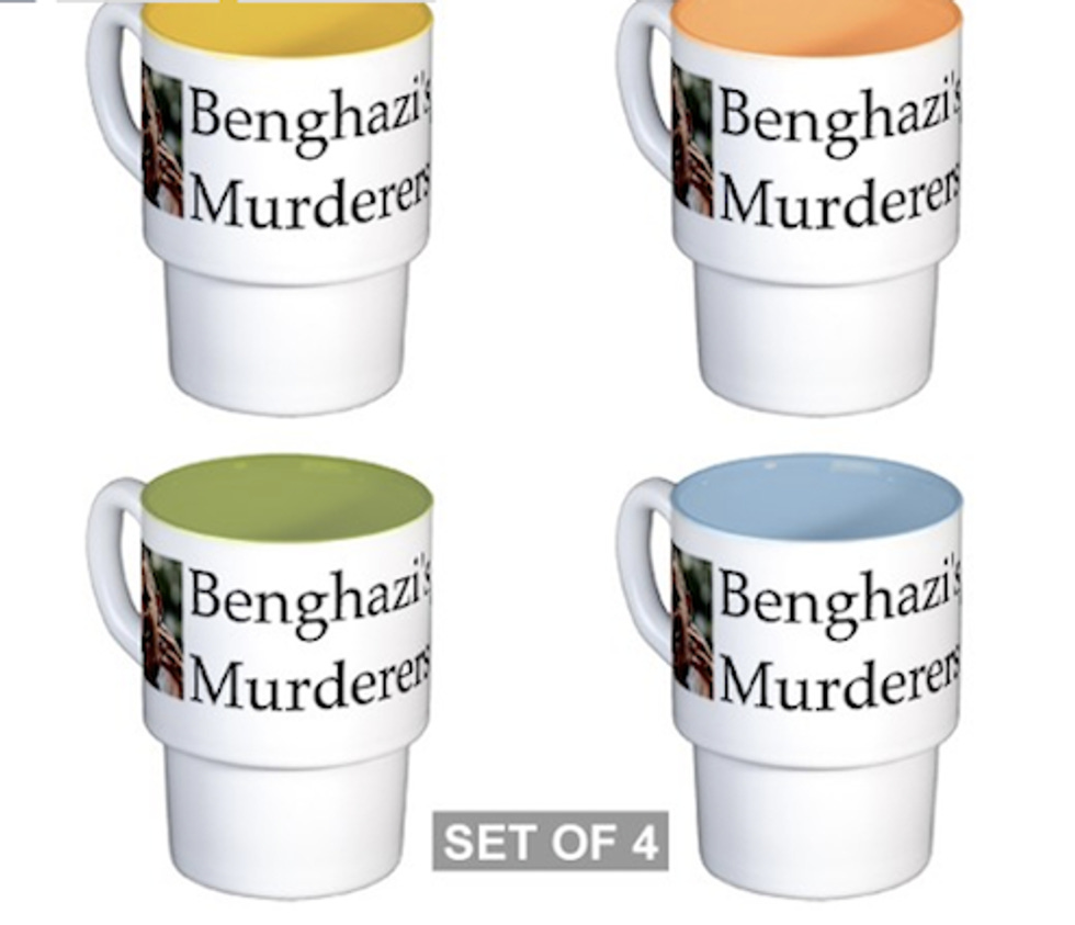 Not all presents need be jolly, however. Sometimes we need presents that remind us of the darkest times in our history, because what better time than a holiday set in the dead of Seasonal Affective Disorder Season to get maudlin or angry or both? That's why this year, we're asking you for these Benghazi's Murderers Mugs, so that we can commemorate the greatest tragedy in American history, worse than the American Revolution and Antietam and 9/11 and the 1984 Summer Olympics and the Ishtar movie put together: Benghazi!!!11!!!.