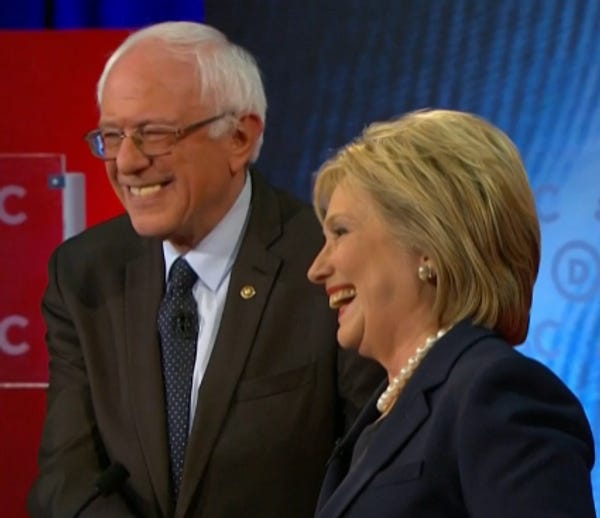 SO NOTED. So is an official endorsement about to happen? It would appear that way! The Huffington Post reports that Hillz and Bernie will do a rally together in New Hampshire on Tuesday! Bernie will say, "I didn't give a damn about your emails when we were running against each other, and I don't give a damn about them now!" And Hillz will say, "You had some really great ideas, like the free college thing, and I am trying to work some of those things into my plans, so all the Democrats can get back to blowjobs, candy canes and defeating Donald Trump!" And Bernie will reply, "I like candy canes! They are cunning in their use of stripes!"