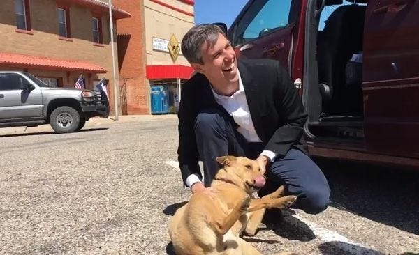 O'Rourke is clearly going for the same positive, come-together and solve our problems because we're Americans dammit tone that he used in his Senate campaign, and he makes a pretty good pitch: