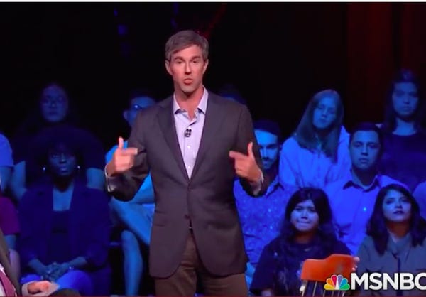 O'Rourke is a refreshing change. It's as if he understands that "working class" doesn't have an invisible "white" permanently attached to it and the 90 percent of black women who voted for Hillary Clinton aren't all Oprah and Beyoncé. During an appearance on "Hardball with Chris Matthews" last night, Beto delivered some high-octane liberalism without once faking the funk. He flat-out said that Trump has "contributed" to tensions in the country. He talked about sensible gun reform (in Texas, mind you). He talked about funding public schools and providing a "living wage" for teachers. He talked like a Democrat and he wasn't afraid.