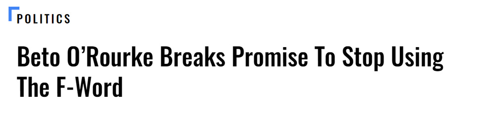 The article is written by some dumbass named Peter Hasson, who is listed as a "senior reporter" for the esteemed publication, you know, because you really need some reportin' chops to report Beto to the cussing police for saying cusses, then saying he's not gonna cuss anymore, but then, in a moment of absolutely righteous rage and exhaustion, saying cusses.